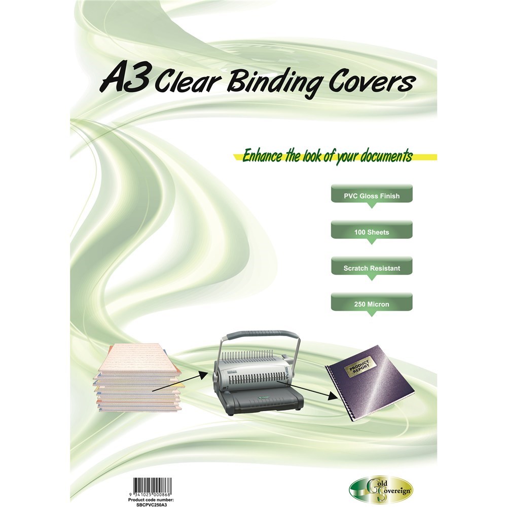 GOLD SOVEREIGN HEAVY DUTY A3 CLEAR BINDING COVERS PKT100