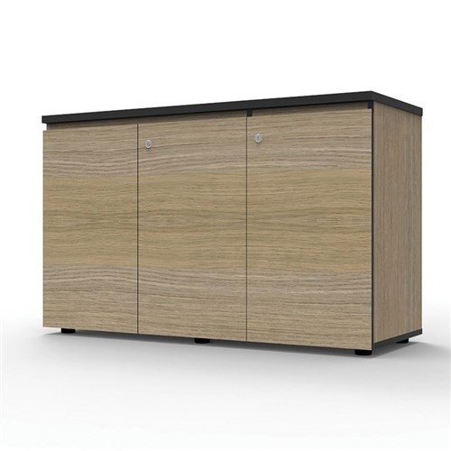 Infinity Swing 3 Door Storage Cupboard 730Hx1200Wx450mmD Natural Oak with Black Edge