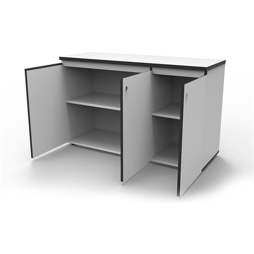 Infinity Swing 3 Door Storage Cupboard 730Hx1200Wx450mmD Natural White with Black Edge