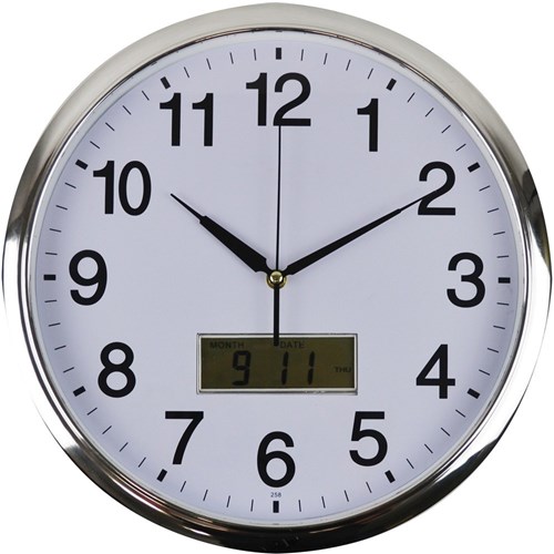 ITALPLAST LCD WALL CLOCK 36cm Chrome Frame/White Face