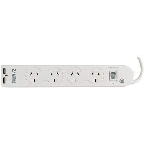 ITALPLAST POWERBOARD 4 OUTLET Surge & 2 x USB chargers