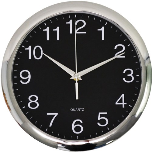 ITALPLAST WALL CLOCK 30cm Chrome Frame/Black Face