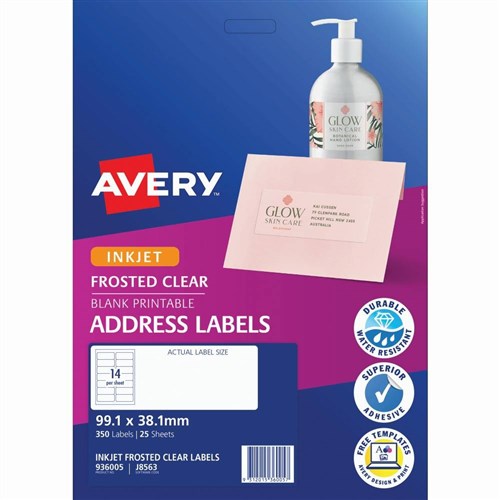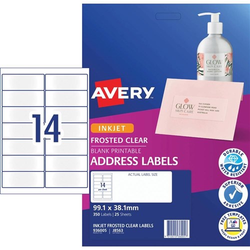 LABEL- AVERY INKJET J8563 CLEAR DL14 PKT