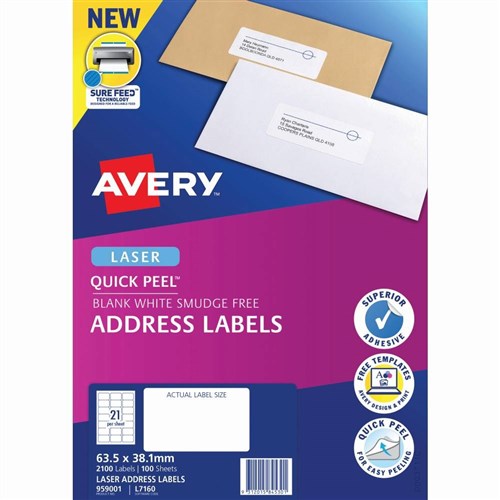 LABEL- AVERY LASER L7160 DL21 PKT 100 959001