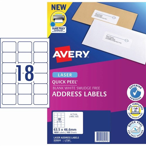 • Size: 63.5x46.6mm 1800 labels, 100 sheets. 18 labels per sheet (18UP).