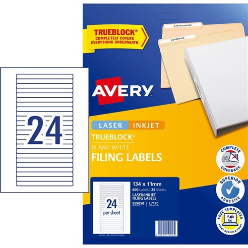 • Size: 134x11mm 600 labels, 25 sheets. 24 labels per sheet (24UP).