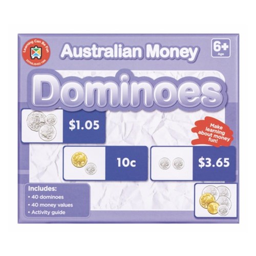 • Includes: 40 dominoes, 40 money values and activity guide.