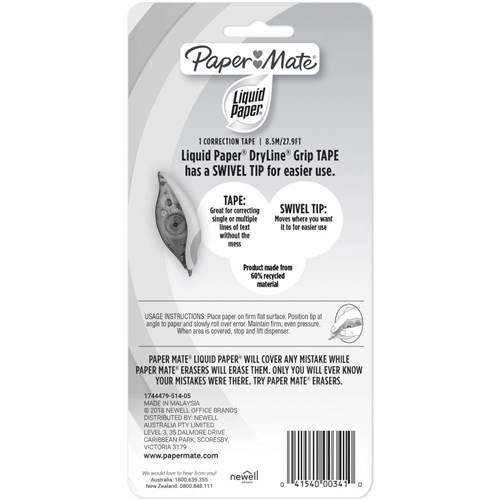 LIQUID PAPER CORRECTION TAPE Dryline Grip 67 Recycled BP