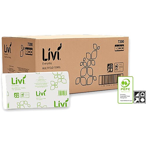 Livi Basics Hand Towel Multifold 1 Ply 200 Sheets Box of 20