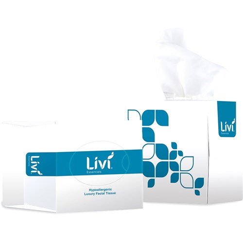 Livi Essentials Facial Tissues Cube Hypoallergenic 2 Ply 90 Sheets Box of 24