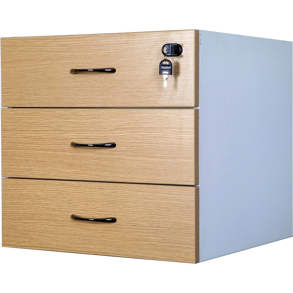 Logan Fixed Pedestal Lockable 3 Drawers 476 x 470D x 450mmH White and Oak