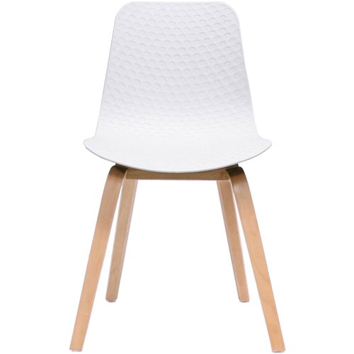 Lucid Meeting Visitor Chair White Patterned Poly Shell Light Oak Timber 4 Leg Base