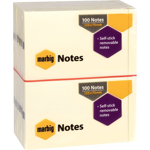 MARBIG NOTES REPOSITIONAL 75 x 125mm YELLOW PKT12