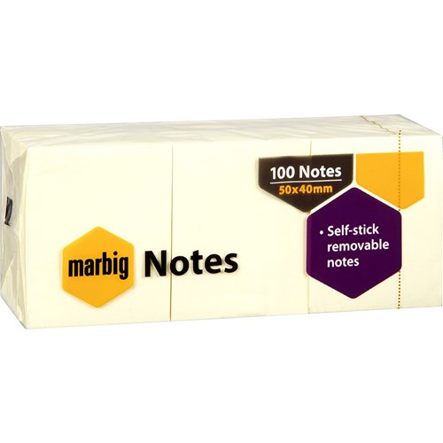 MARBIG STICKY NOTES Repositional 40mm x 50mm Yellow Pack of 12