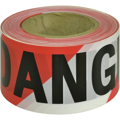 MAXISAFE BARRICADE TAPE DANGER Black On Red/White 75mm x 100m