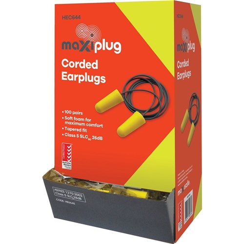 MAXISAFE DISPOSABLE EARPLUGS Corded Class 5 27dB