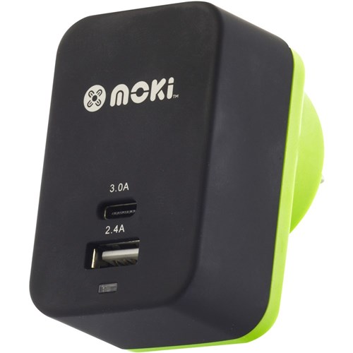 MOKI WALL CHARGER PLUS (Type-C + USB) 3.0 RapidCharge Black