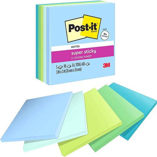 NOTE- POST IT SUPER STICKY MED TROPICAL PKT 5 PKT 654-5SST BORA BORA
