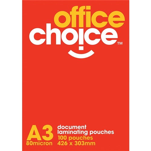 OFFICE CHOICE LAMINATING POUCHES A3 80 MICRON BOX 100