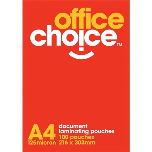 OFFICE CHOICE LAMINATING POUCHES A4 125 Micron BOX 100