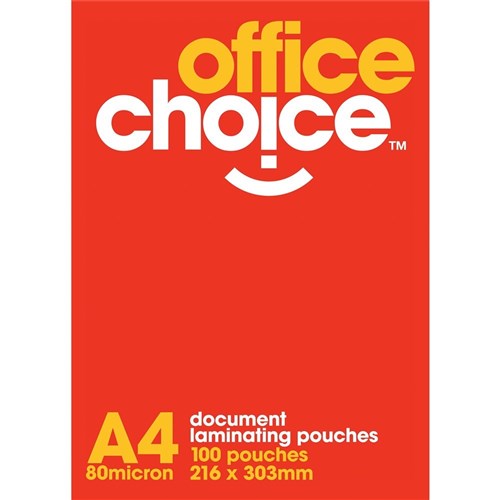 OFFICE CHOICE LAMINATING POUCHES A4 80 Micron BOX 100