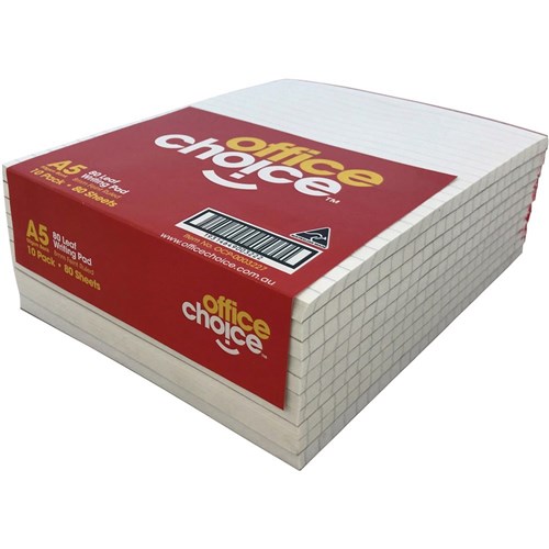 OFFICE CHOICE NOTE PAD A5 210X148MM WHITE RULED PKT10