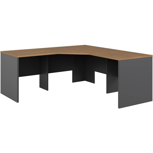 OM Premier 3 Piece Corner Workstation 1800Hx700Wx720Dmm Regal Walnut and Charcoal