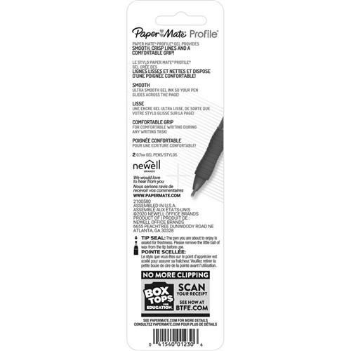 PAPERMATE GEL PEN PROFILE Retractable 0.7mm Black Pack of 2