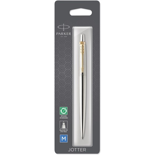 PARKER JOTTER BALLPOINT PEN Stainless Steel Gold Trim