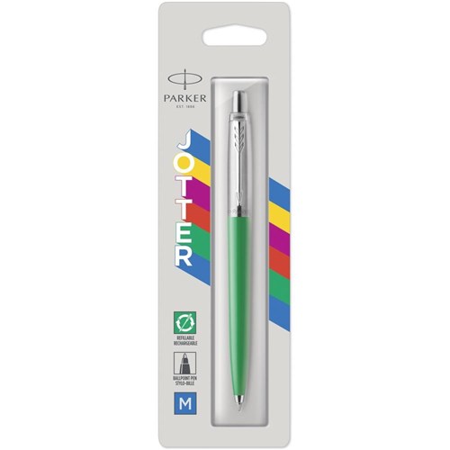 Parker Jotter Originals Ballpoint Pen Green Barrel Stainless Clip Refill Blue