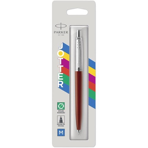 Parker Jotter Originals Ballpoint Pen Red Barrel Stainless Clip Refill Blue