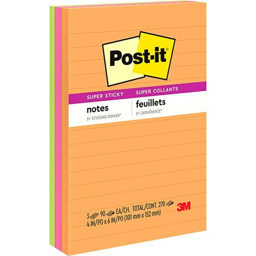 POST-IT SUPER STICKY 660-3SSUC 98MM X 149MM PCK 3
