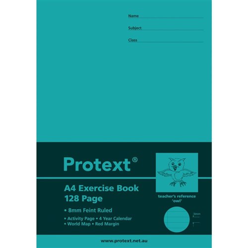 PROTEXT EXERCISE BOOK A4 8mm Ruled 128pgs Owl