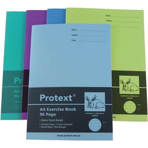 PROTEXT EXERCISE BOOK A4 8mm Ruled 96pgs Rabbit