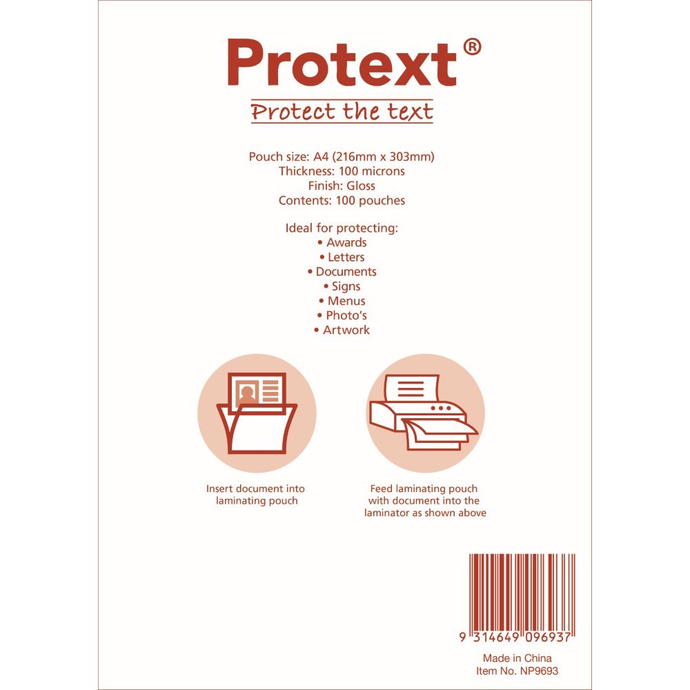 Protext Laminating Pouches A4 100 Micron Box Of 100