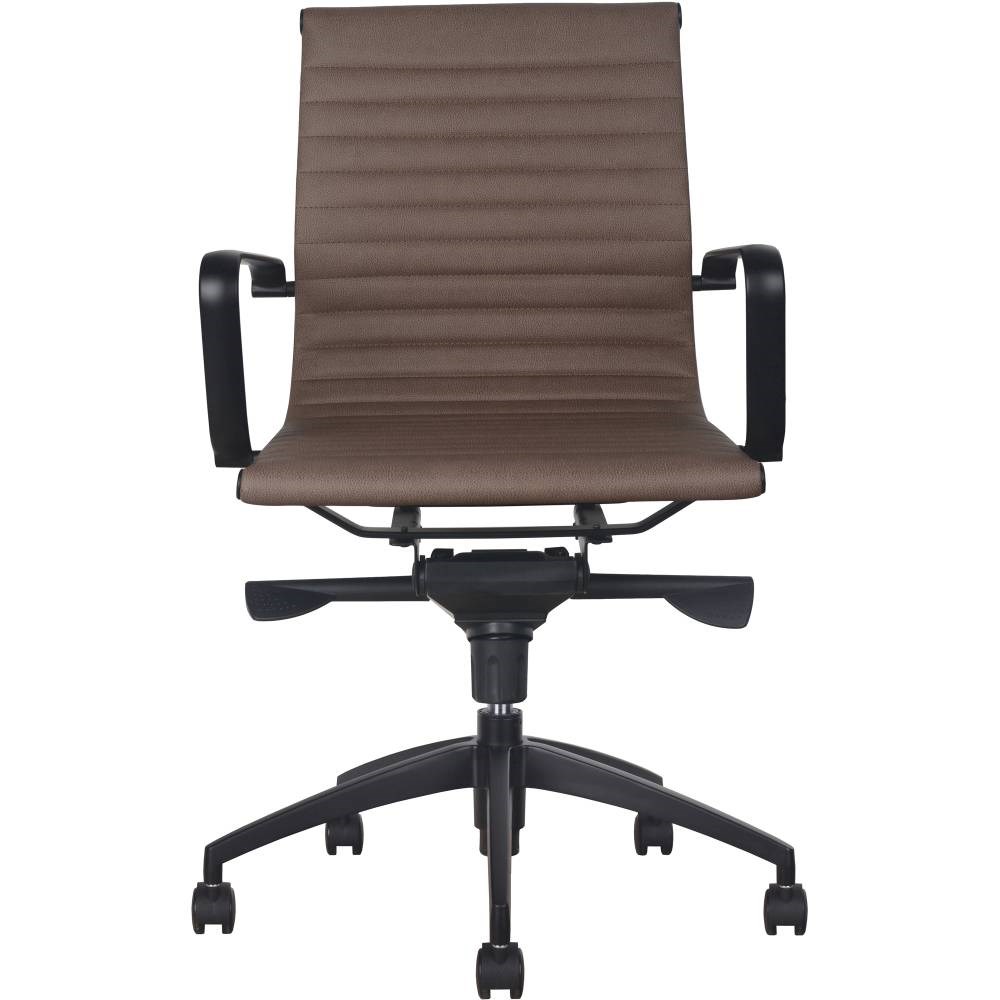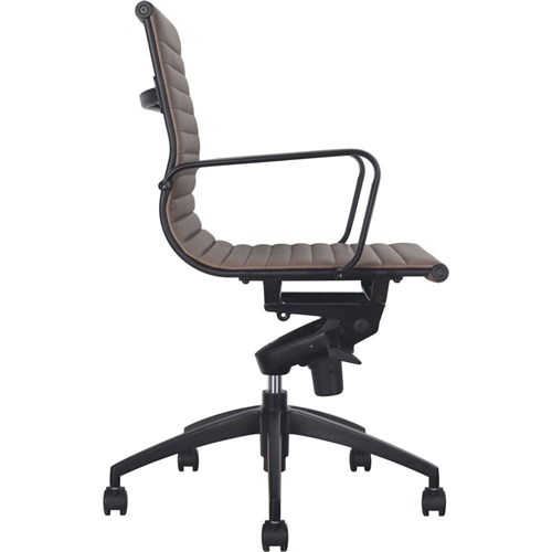PU605M Medium Back Executive Chair Black Base and Arms Tan Ribbed PU Seat and Back