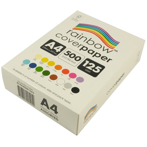 RAINBOW COVER PAPER ASSORTED COLOURS 125GSM A4