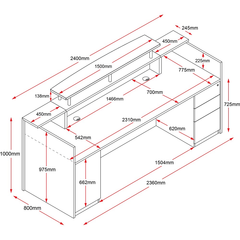 • Unit Dimensions: 2400mm W x 800mmD x 1150mmH.