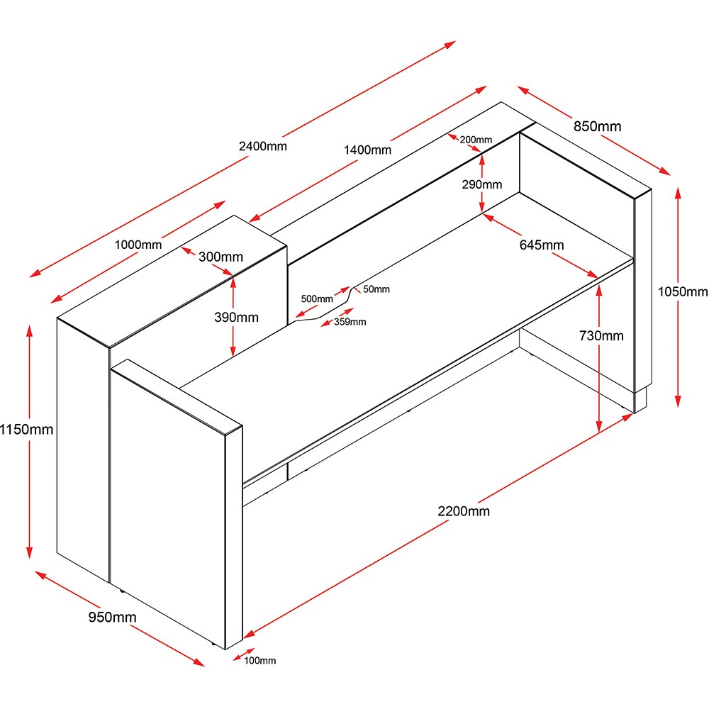 Rapid Sempre Reception Counter 1150Hx2400Wx950mmD Natural Oak and Black