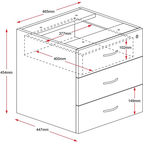 Rapid Worker Fixed Pedestal 3 Drawer 454Hx465Wx447mmD Ironstone