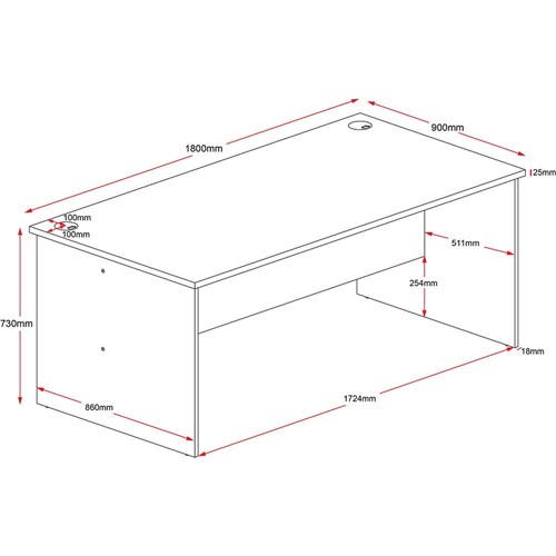 Rapid Worker Open Desk 1800Wx900Dx730mmH Natural Oak & Ironstone