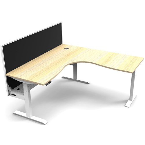 • Dual Motor 3 stage motorised legs. Corner Workstation with Cable Tray and Screen.