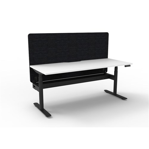 Rapidline Halo+ Single Sided Workstation + Black Eco Screen +Tray 1500Wx620-1270mmH Wht/Bl