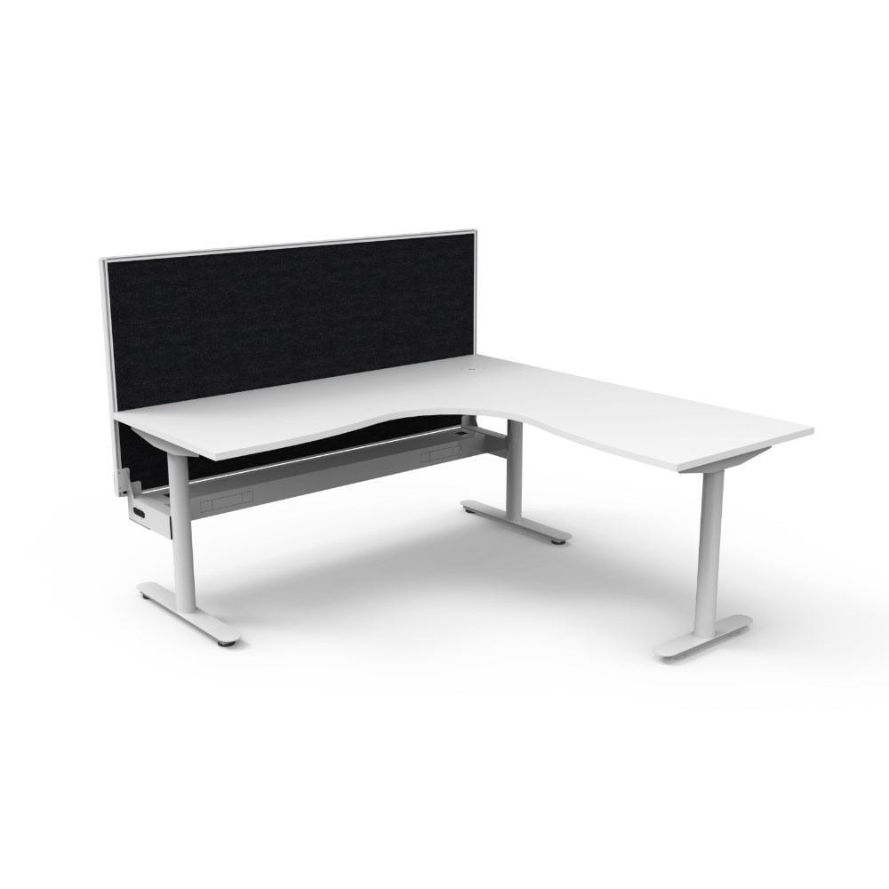 Rapidline Halo Static Corner Workstation + Screen + Tray 1800/1800W x 1330mmH White/Wht
