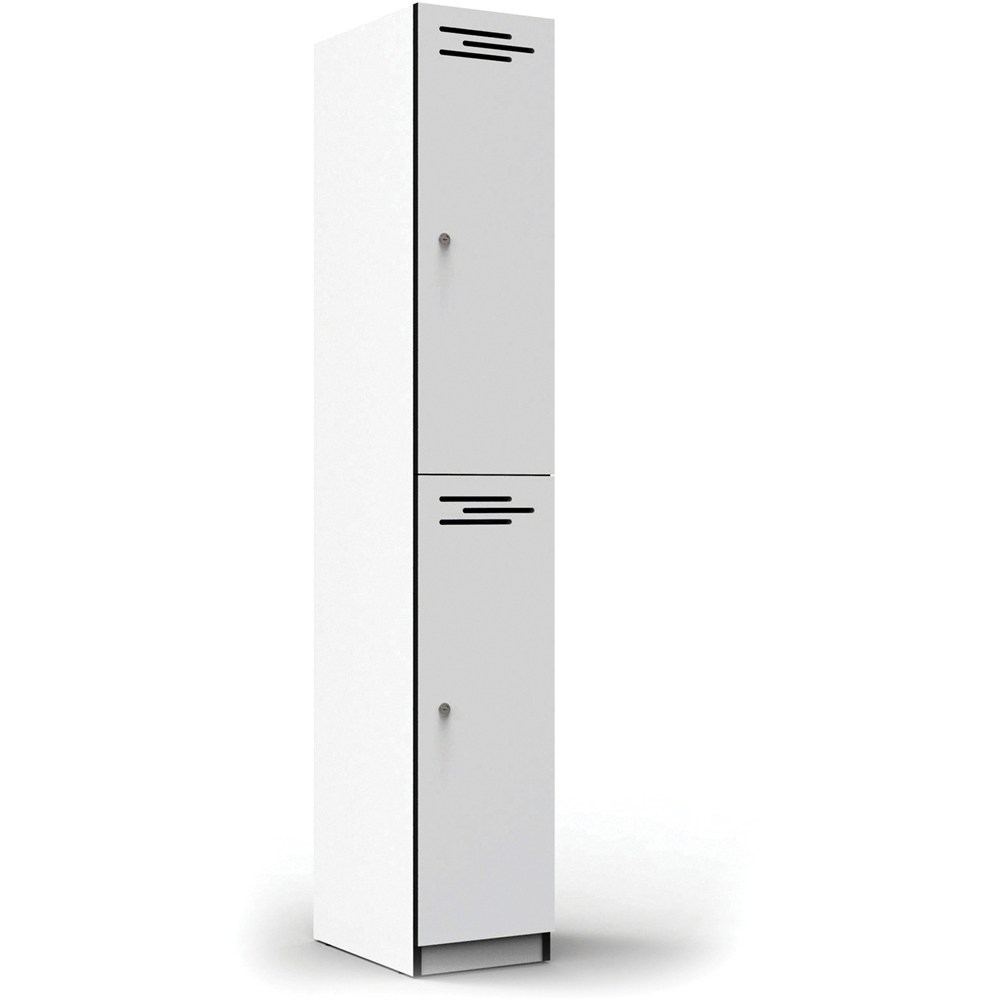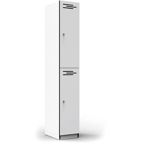 • RAPIDLINE MELAMINE LOCKER 2 DOOR 305W x 455D x 1850H NATURAL WHITE WITH BLACK