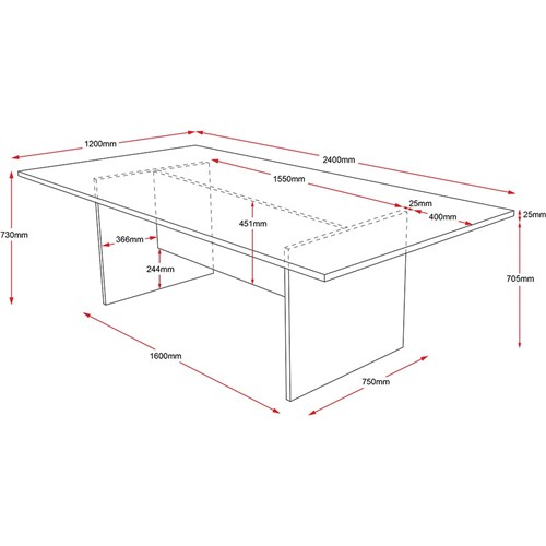 Rapidline Rectangle Boardroom Table 730Hx1200Wx2400mmD Cherry Top Ironstone Base