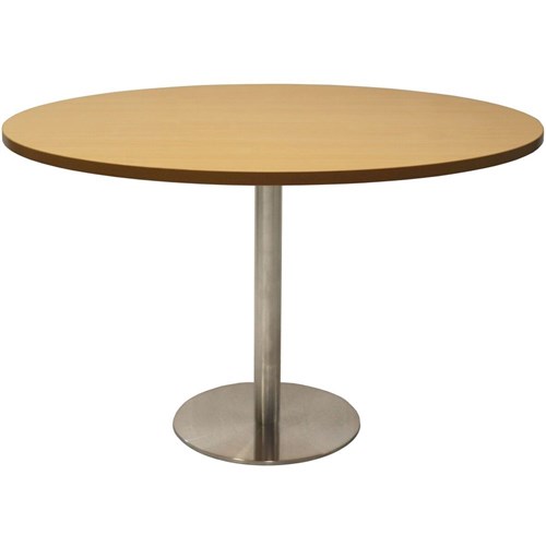 Rapidline Round Meeting Table 1200mm Diam Top Natural Oak Stainless Steel