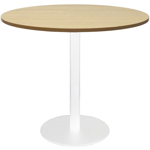 Rapidline Round Meeting Table 900mm Diam Top Natural Oak with White Satin