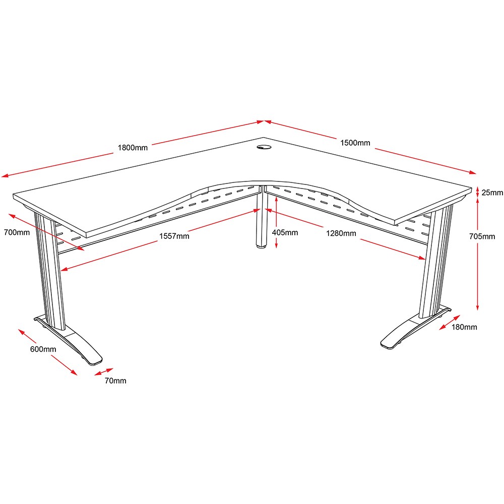 • One piece corner workstation with 25mm top.