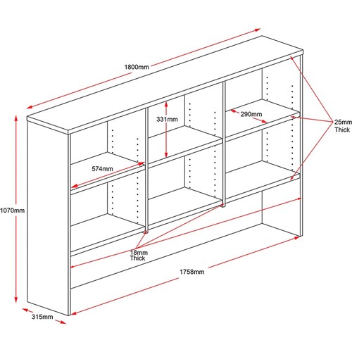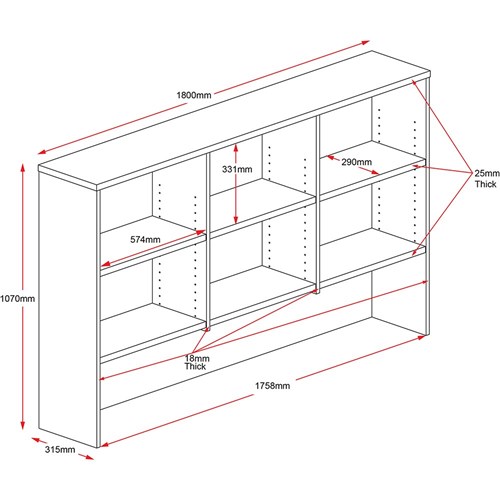 Rapidline Span Desk Hutch 1070Hx1800Wx315mmD Beech